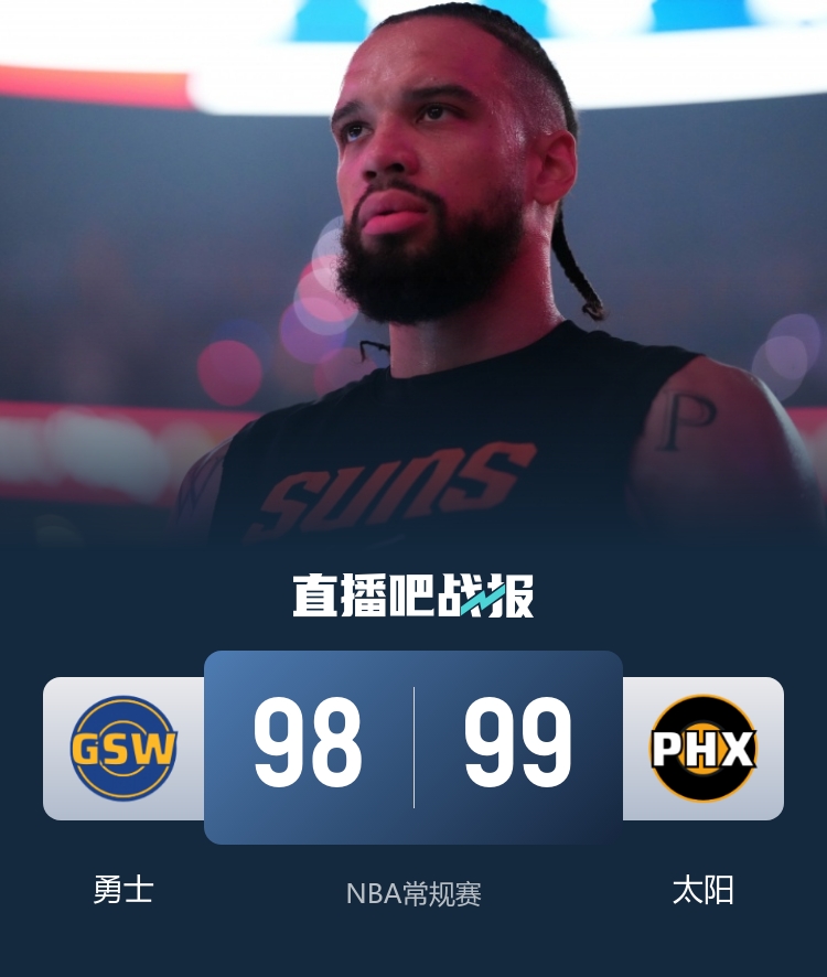 12月19日讯 NBA常规赛继续进行,勇士客场挑战太阳,此前勇士2连败后13胜14负排名西部第8,太阳同样两连败14胜12负排名西部第7。